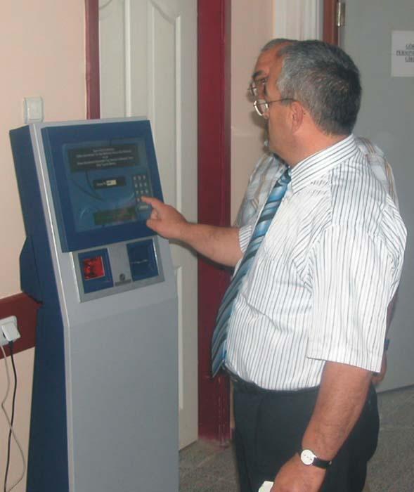 bunların da kısa sürede giderileceğine inanıyorum. Polikliniklerimizde hastalarımızın işlemlerini rahat yapabilmeleri için poliklinik ve hasta kabul ünitelerini yeniden düzenleyerek hizmete sunduk. Hastalarımızın sıra yoğunluğunu azaltmak için, hastane bilgi yönetim sistemi ile entegre çalışan Çözüm Telefonla Randevu Sistemi, Çözüm İnternetten Randevu Sistemi, Çözüm Kiosk Sistemi ve SMS ile Randevu Sistemi ve ayrıca internet üzerinden hasta takip uygulamalarını başlattık. Bu uygulamalar Türkiye’deki birçok hastanede kullanılan yaygınlaşmış sistemlerden oluşuyor. İnternet erişiminin olduğu her yerden, ya da telefon açarak randevu alabiliyor. Çözüm SMS ile Randevu Sistemi ile Turkcell aboneleri 2919’a kısa mesaj göndererek randevu alabiliyor. Çözüm SMS ile Randevu Sistemi kullanımı çok kolay, çok yeni ve çok pratik bir sistem. Çözüm Kiosk Sistemi ile hastalarımız müracaat bankolarında sıra beklemeden, uzun kuyruklar oluşturmadan sıralarını alabiliyorlar. Sıra konusunda oluşabilecek itirazların, iltimasların önüne geçilmiş oluyor. Hastalarımıza kolaylık sağlamak amacıyla kiosk cihazının kullanımı için bir personel görevlendireceğiz. Görevlimiz hastalarımıza kullanım için ön bilgi verecek. Bir süre sonra kullanım konusunda gerekli anlatımlar tamamlandığında görevliyi çekerek sistemin daha rahat çalışması sağlayacağız.
